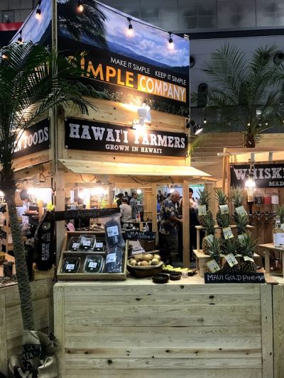 ハワイから原料を輸入して国内で製品化した商品も展示。最終製品だけではなく原料の使い方などもご提案いたしました。