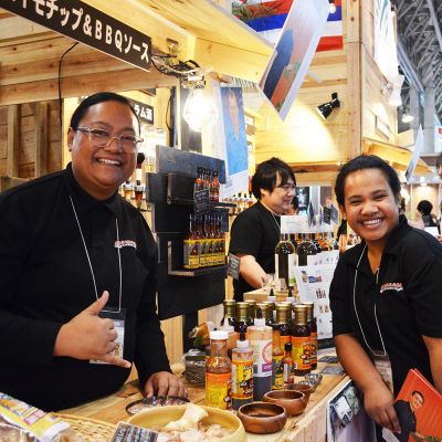 会期中はハワイ現地から駆けつけてくれたスタッフも多数。写真はハワイアンチップカンパニーからやってきたケイティ(左)とネクンダ。日本に来ること自体初めての彼女たち、最初は緊張感が漂いましたが、しばらくすると「Hawaiian Taro Chips!」「Aloha!」と元気な掛け声とスマイルと共に、来場者に試食をおすすめしていました。FOODEXは世界各国からたくさんの出展者が集まるので、国際交流食豊かなところも魅力ですね。